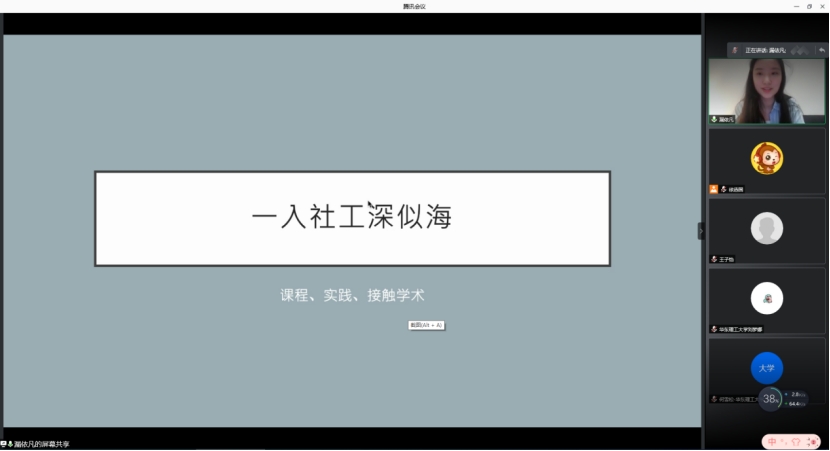 2021年3月18日晚7点,在第十五届国际社工日活动期间,华东理工大学社会工作系邀请了社会工作系优秀校友漏依凡为华理学子开展了以“从华理社会工作本科到哥伦比亚大学社会工作博士的成长之旅”为主题的线上专题讲座,本次讲座由社会工作系副系主任徐选国主持,社会与bat365中国在线平台官方网站院长何雪松教授、专业教师和各年级同学80余人参与了此次专题分享。