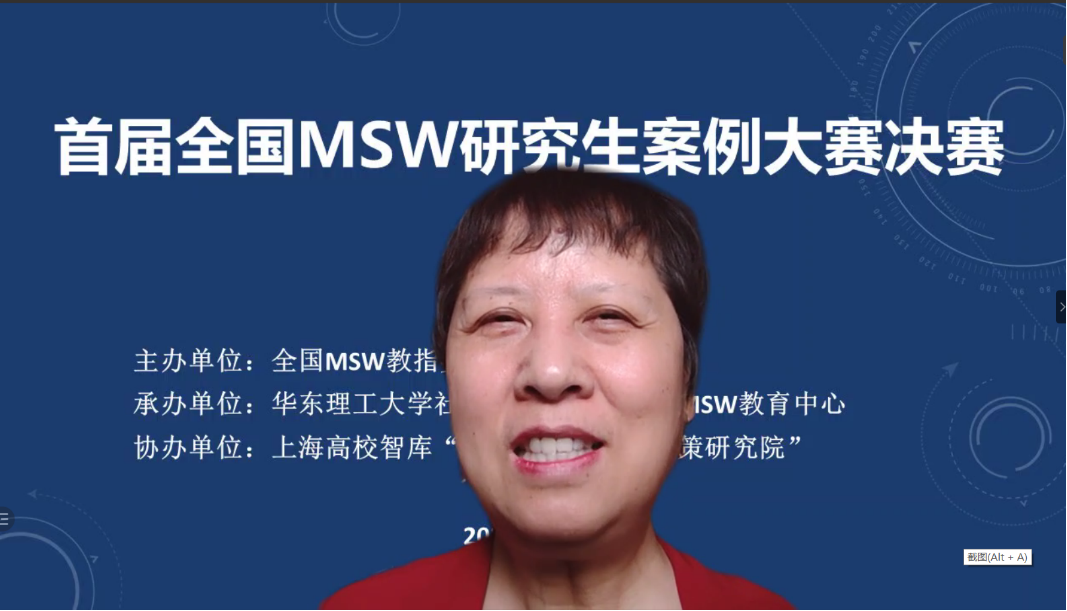 首届全国MSW研究生案例大赛由全国MSW教指委主办,学院MSW教育中心承办,上海高校智库“社会工作与社会政策研究院”协办。大赛自去年9月份启动以来,先后共进行了三轮比赛:第一轮的初赛采用“通讯评选”的方式,邀请各培养单位推荐的评审专家,评选出百强案例;第二轮的复赛同样采用“通讯评选”的方式,邀请全国MSW教指委委员担任评审专家,评选出三十强案例;第三轮的决赛采用“线上问辩”的方式,邀请全国MSW教指委委员担任评审专家,评选出大赛一等奖、二等奖和三等奖。